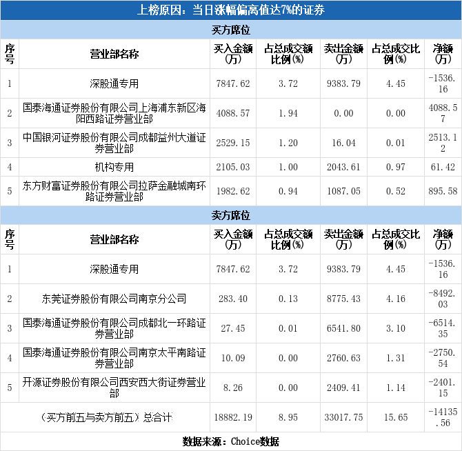 今日龙虎榜单上出现了深股通的身影,占据了买一、卖一的位置,净卖出1536.16万元,占当日成交总额的0.73%。