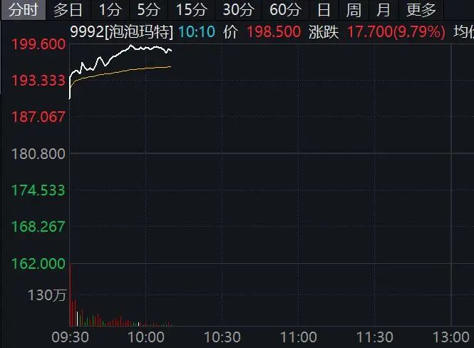 港股泡泡玛特今日股价大涨,一度涨逾10%。
