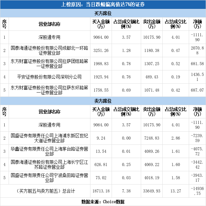深股通现身龙虎榜,飞马国际跌停(09-26)