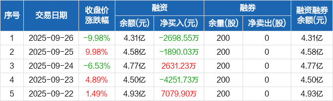 飞马国际:融资净偿还2698.55万元,融资余额4.31亿元(09-26)