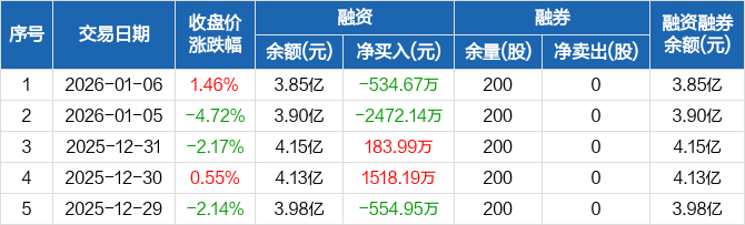 飞马国际:融资净偿还534.67万元,融资余额3.85亿元(01-06)