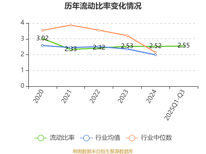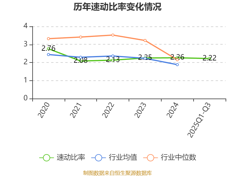 2025年前三季度,公司流动比率为2.55,速动比率为2.22。