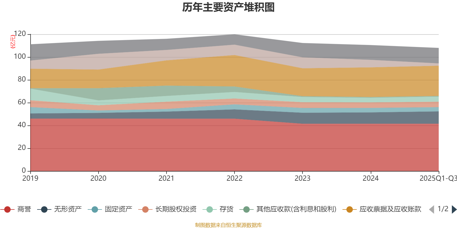 资产重大变化方面,截至2025年三季度末,公司货币资金较上年末减少68.99%,占公司总资产比重下降4.11个百分点;递延所得税资产较上年末增加114.93%,占公司总资产比重上升1.23个百分点;应收票据及应收账款较上年末增加2.08%,占公司总资产比重上升1.05个百分点;无形资产较上年末增加8.75%,占公司总资产比重上升1.02个百分点。