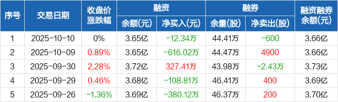 新里程:融资净偿还12.34万元,融资余额3.65亿元(10-10)
