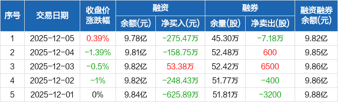 东华能源:融资净偿还275.47万元,融资余额9.78亿元(12-05)