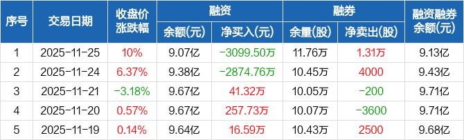 福晶科技融资融券信息显示,2025年11月25日融资净偿还3099.5万元;融资余额9.07亿元,较前一日下降3.3%。