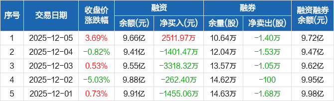 福晶科技:融资净买入2511.97万元,融资余额9.66亿元(12-05)