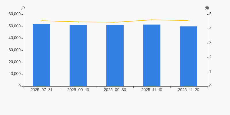 2025年7月31日至今,公司股东户数有所下降,区间跌幅为3.75%。2025年7月31日至2025年11月20日区间股价上涨0.22%。