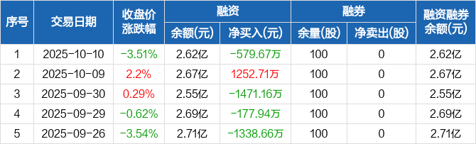 启明信息:融资净偿还579.67万元,融资余额2.62亿元(10-10)