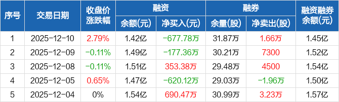 塔牌集团:融资净偿还677.78万元,融资余额1.42亿元(12-10)