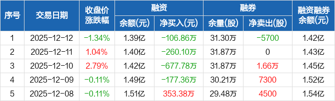 塔牌集团:连续4日融资净偿还累计1222.1万元(12-12)