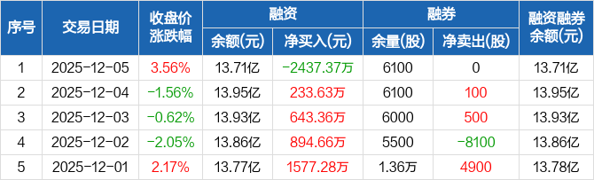 恒邦股份:融资净偿还2437.37万元,融资余额13.71亿元(12-05)