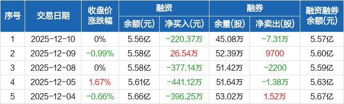 奥特佳:融资净偿还220.37万元,融资余额5.56亿元(12-10)