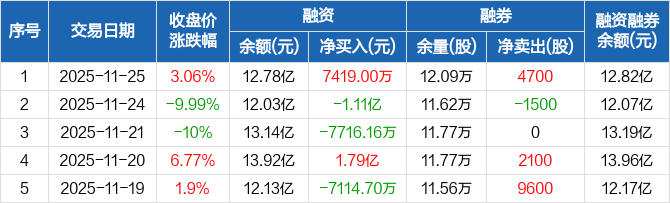 盛新锂能:融资净买入7419万元,融资余额12.78亿元(11-25)