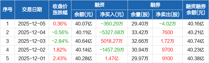 歌尔股份:融资净偿还360.29万元,融资余额40.07亿元(12-05)