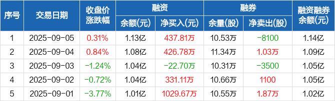 九阳股份:融资净买入437.81万元,融资余额1.13亿元(09-05)