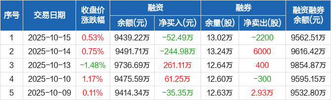 九阳股份:融资净偿还52.49万元,融资余额9439.22万元(10-15)