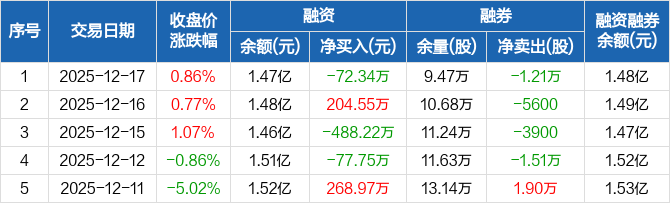 九阳股份:融资净偿还72.34万元,融资余额1.47亿元(12-17)