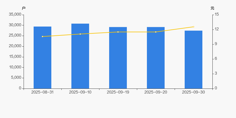 2025年8月31日至今,公司股东户数有所下降,区间跌幅为6.59%。2025年8月31日至2025年9月30日区间股价上涨18.73%。