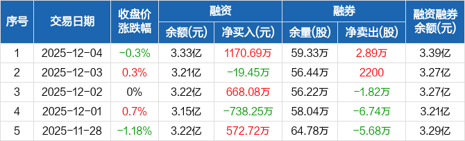 滨江集团:融资净买入1170.69万元,融资余额3.33亿元(12-04)