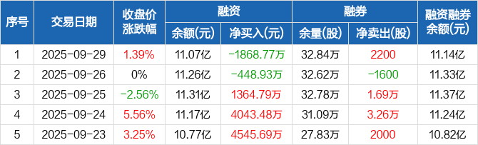 蔚蓝锂芯:融资净偿还1868.77万元,融资余额11.07亿元(09-29)