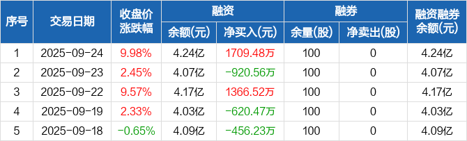 北化股份:融资净买入1709.48万元,融资余额4.24亿元(09-24)