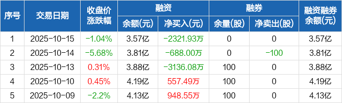 北化股份:连续3日融资净偿还累计6146.01万元(10-15)