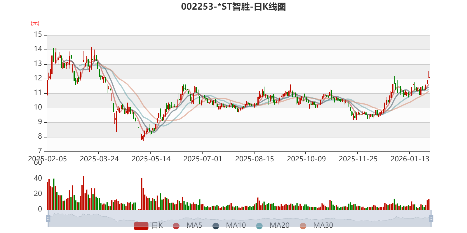 中证智能财讯 *ST智胜(002253)1月29日晚间披露2025年度业绩预告,预计2025年实现营业收入3.2亿元至3.5亿元;归母净利润亏损2.3亿元至2.8亿元,上年同期亏损7230.95万元;扣非净利润亏损2.3亿元至2.8亿元,上年同期亏损8529.15万元;基本每股收益-1.02元/股至-1.24元/股。以最新收盘价计算,市净率(LF)约2.56倍,市销率(TTM)约8.15倍。