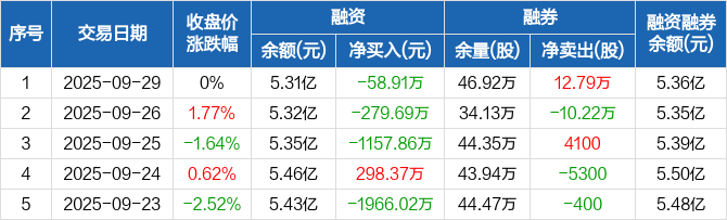 泰和新材:连续3日融资净偿还累计1496.46万元(09-29)