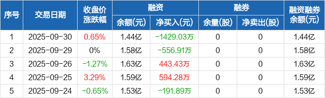 兆新股份:融资净偿还1429.03万元,融资余额1.44亿元(09-30)