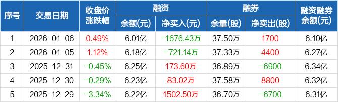 恩华药业:融资净偿还1676.43万元,融资余额6.01亿元(01-06)