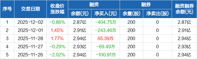 大东南:融资净偿还404.75万元,融资余额2.87亿元(12-02)
