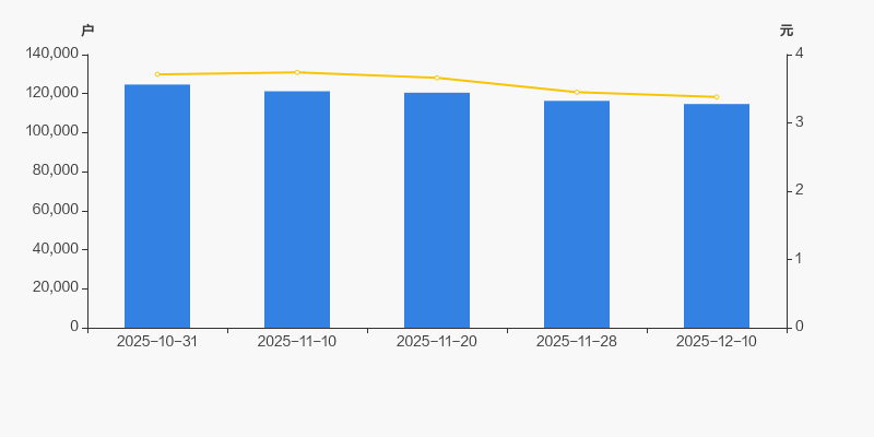 2025年10月31日至今,公司股东户数有所下降,区间跌幅为8.00%。2025年10月31日至2025年12月10日区间股价下降8.89%。