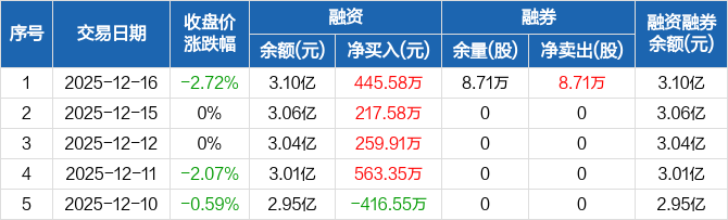 大东南:连续4日融资净买入累计1486.42万元(12-16)
