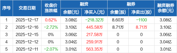 大东南:融资净偿还218.32万元,融资余额3.08亿元(12-17)