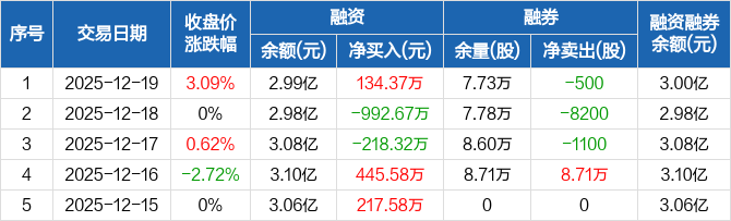 大东南:融资净买入134.37万元,融资余额2.99亿元(12-19)