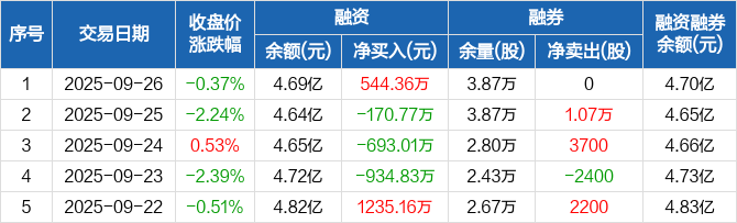 建设工业:融资净买入544.36万元,融资余额4.69亿元(09-26)