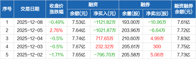 浙富控股:融资净偿还1121.82万元,融资余额7.53亿元(12-08)