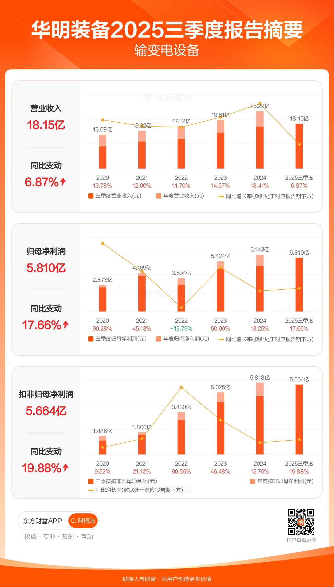 图解财报:华明装备前三季归母净利润5.81亿元,同比增长17.66%