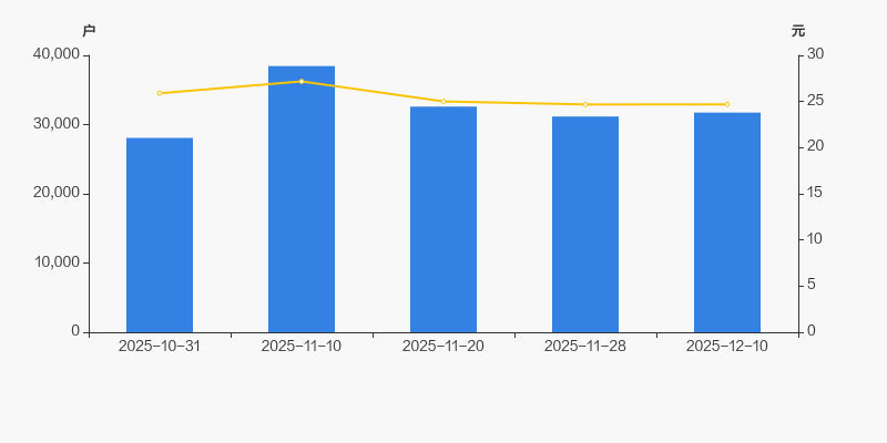 2025年10月31日至今,公司股东户数显著增长,区间涨幅为13.04%。2025年10月31日至2025年12月10日区间股价下降4.62%。