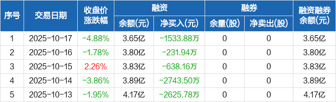 川润股份:连续5日融资净偿还累计7773.26万元(10-17)