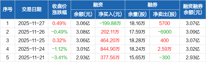 华昌化工:融资净偿还199.88万元,融资余额3.06亿元(11-27)