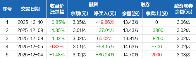华昌化工:融资净买入419.86万元,融资余额3.05亿元(12-10)