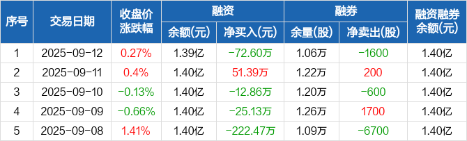桂林三金:融资净偿还72.6万元,融资余额1.39亿元(09-12)