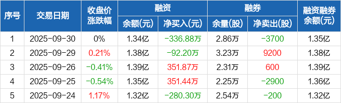 桂林三金:融资净偿还336.88万元,融资余额1.34亿元(09-30)
