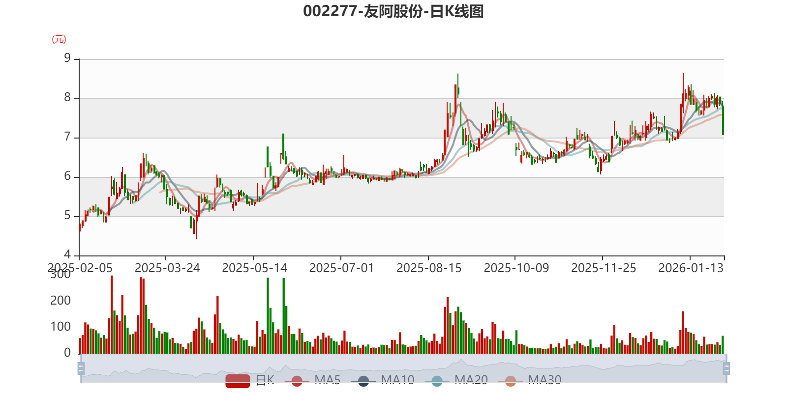 中证智能财讯友阿股份(002277)1月29日晚间披露2025年度业绩预告,预计2025年归母净利润亏损2.5亿元至3.72亿元,上年同期盈利2801.13万元;扣非净利润亏损2.76亿元至3.98亿元,上年同期亏损279.87万元;基本每股收益-0.1793元/股至-0.2668元/股。以最新收盘价计算,市净率(LF)约1.47倍,市销率(TTM)约9.26倍。
