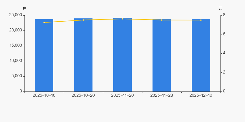 截至2025年12月10日,公司最新总股本为5.27亿股,其中流通股本为5.05亿股。户均持有流通股数量为2.12万股,较上期略有下降;户均流通市值15.89万元。