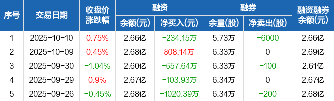 天润工业:融资净偿还234.15万元,融资余额2.66亿元(10-10)