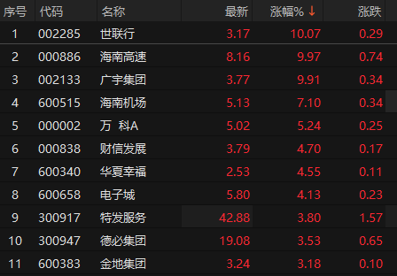 12月10日午后,房地产板块震荡走强,截至13时28分,世联行拉升触及涨停,海南机场、万科A、华夏幸福、财信发展等跟涨。海南高速、广宇集团此前封板。