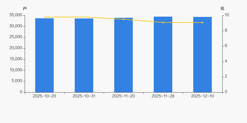 截至2025年12月10日,公司最新总股本为3.81亿股,其中流通股本为3.7亿股。户均持有流通股数量由上期的1.07万股上升至1.08万股,户均流通市值9.77万元。